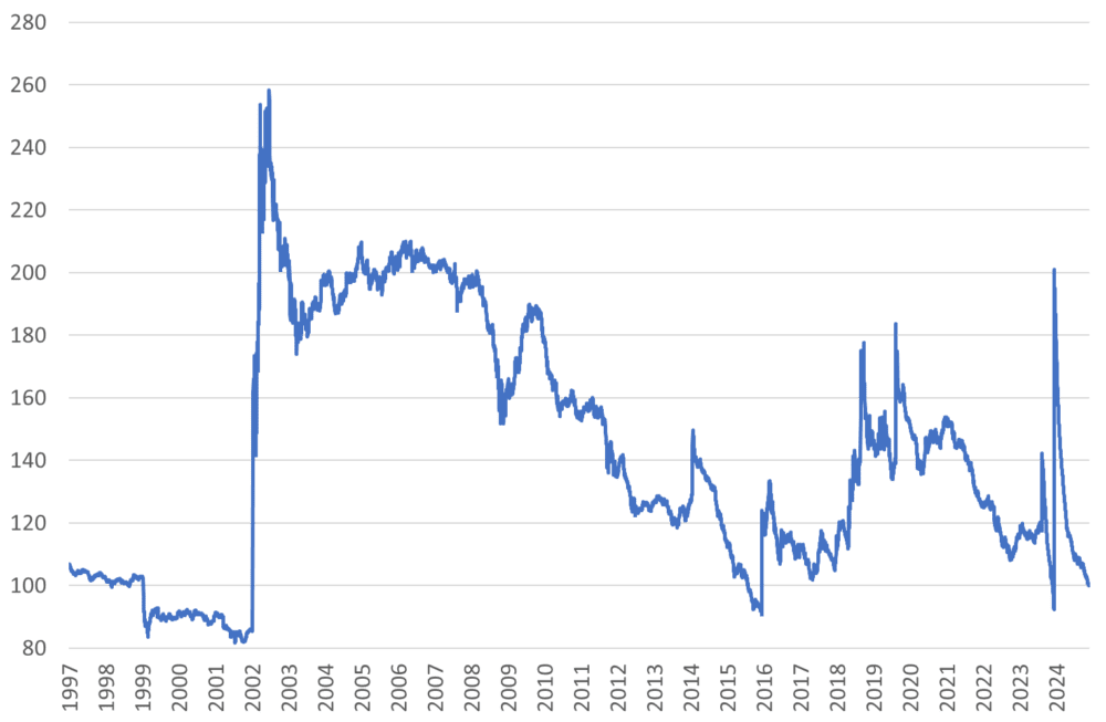 Tipo de cambio real multilateral (índice 26/11/24 = 100)