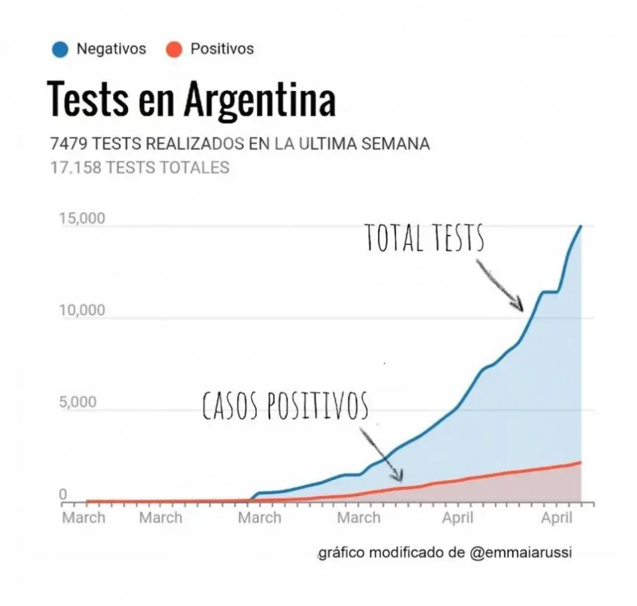 Entendamos esto de modo práctico: si la gente está en cuarentena, ¿qué sucede con los que se enferman? O se quedan en sus casas hasta recuperarse (la mayoría), o van al hospital. Si van al hospital y la médica a cargo sospecha COVID-19, en algunos lados se lo testea, y en otros, si no requiere hospitalización, se vuelve a casa a la cuarentena. ¿Cambió algo sobre si fue testeado o no? ¿Cambia algo saber que hay 100 nuevos casos cuando se testeó a 200 o se testeó a 20.000? No. Porque las políticas de tests es tan distinta en distintos lugares, esa estadística no sirve para comparar entre países o siquiera, como en Estados Unidos, entre regiones.