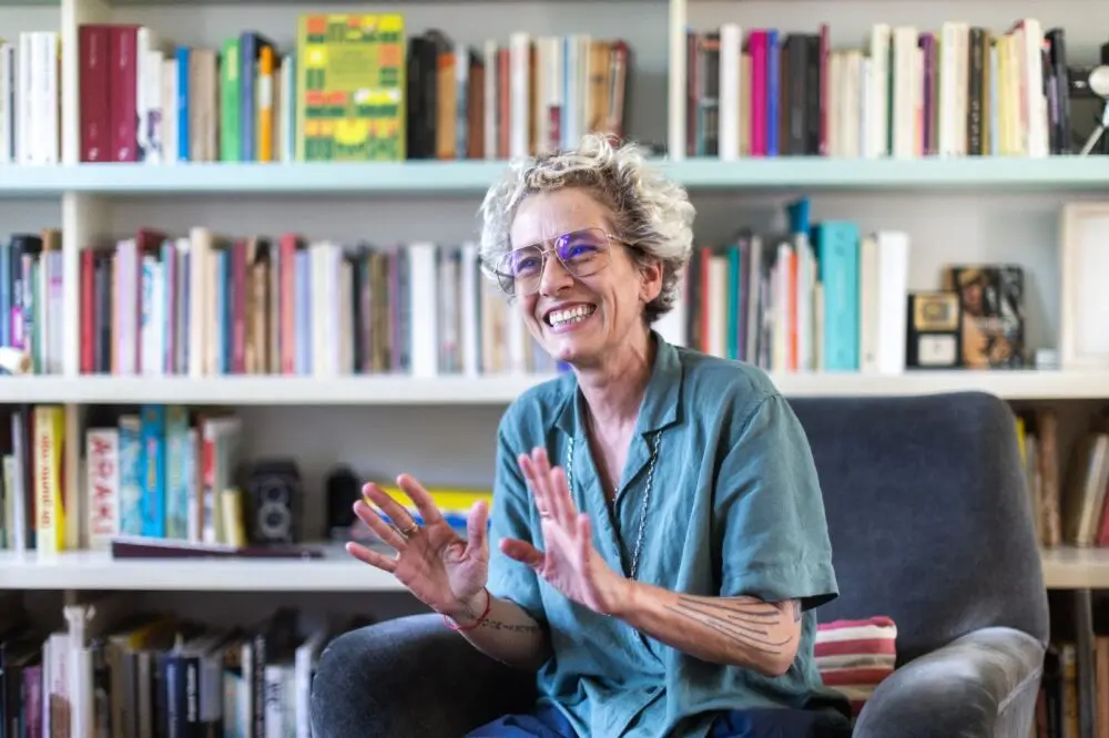 En marzo llegué a la hermosa casa de la directora de cine y escritora Albertina Carri, un PH reciclado del barrio de Villa Ortúzar. La biblioteca es felizmente imponente: ocupa una pared larga, del piso al techo, y enmarca un living comedor cómodo y luminoso con una salamandra. La entrevista coincide con el lanzamiento en Argentina de su nuevo libro, Cine vivo, que publicó en la editorial chilena Banda Propia, y que es una suerte de montaje de distintos textos. Un libro-artefacto, dice ella, en el que se organizan recorridos autobiográficos e indagaciones sobre el archivo y la memoria, pero también investigaciones a partir de sus últimas películas y algunas charlas magistrales. Es que su propia obra es híbrida: se mueve entre el cine, la literatura, las artes visuales y la producción.