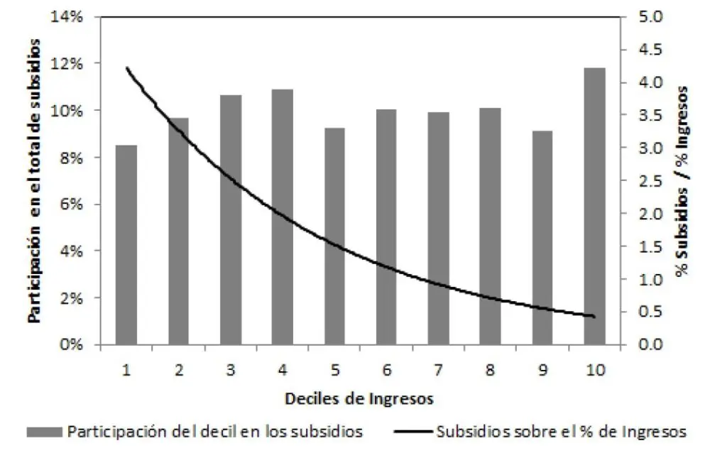 El argumento más fuerte en contra de los subsidios energéticos es que son una medida “pro-rico” (se le conoce así en la literatura). Esto significa que los estratos de mayores ingresos reciben un monto más elevado -en términos absolutos- que aquellos de menores ingresos. Esto no se debe confundir con el concepto de regresivo, que es cuando la medida beneficia a los estratos más altos (pero comparando el impacto que tiene la iniciativa en relación a los ingresos de cada uno).