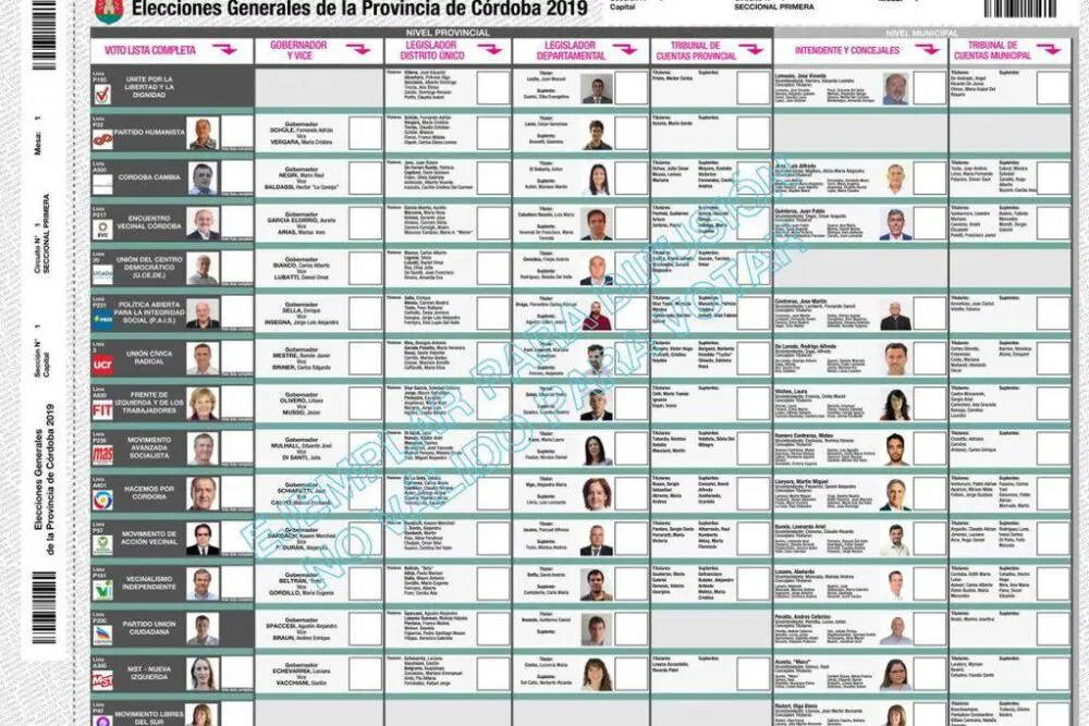 Si en un planazo leíste todos los proyectos de ley como yo, habrás visto que se habla del “modelo Córdoba” y del “modelo Santa Fe”. Entre ambos hay diferencias de diseño de boleta. El primero concentra todas las candidaturas (gobernador, legisladores nacionales y municipios cuando coinciden) de todos los espacios políticos en una sola papeleta. Es esta:
