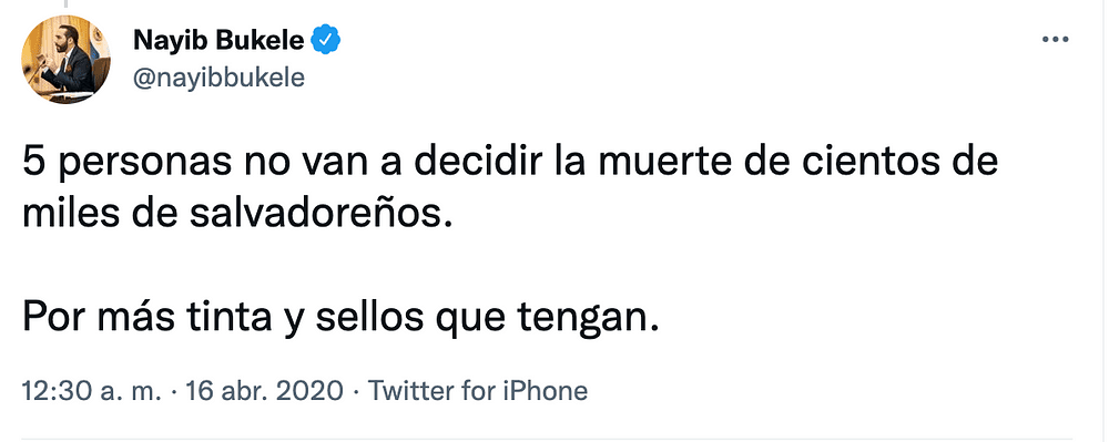 El freno llega a través de la justicia. La Sala de lo Constitucional de la Corte Suprema ataca los decretos presidenciales mientras el fiscal general comienza a investigar a funcionarios involucrados en compras dudosas, justificadas por la pandemia. Pero Bukele se rebela, dice que no va a acatar los fallos.