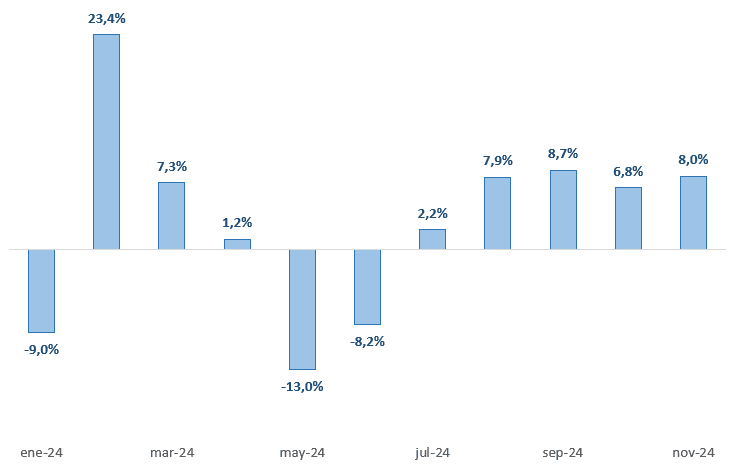 La victoria de Donald Trump provocó, en lo inmediato, otro “shock positivo” para los activos financieros locales, que continuaron mostrando mejoras como en las últimas semanas (aumentó el precio de los títulos de la deuda pública y el riesgo país perforó la barrera de los 900 puntos). Esto se asoció a una idea de que, el vínculo entre el presidente Javier Milei y el de Estados Unidos, lleve a un nuevo financiamiento de la mano de un acuerdo con el FMI.