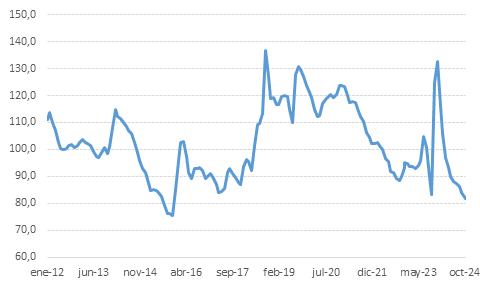 ¿Cuál es el riesgo de esta estrategia? Que haya un salto del dólar que borre de manera abrupta toda la ganancia acumulada. No obstante, por los motivos mencionados al principio, el mercado no ve que eso vaya a suceder, por lo menos hasta las elecciones del año próximo, tal como se desprende del precio pactado en los mercados futuros del dólar, que muestra que el mercado cree que el Banco Central va a poder sostener el aumento del 2% hasta septiembre del año próximo.