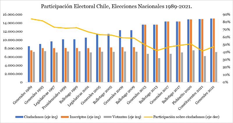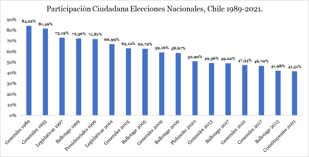 Fuente: elaboración propia en base a Wikipedia y Servel. El orden es descendente de mayor a menor participación.
