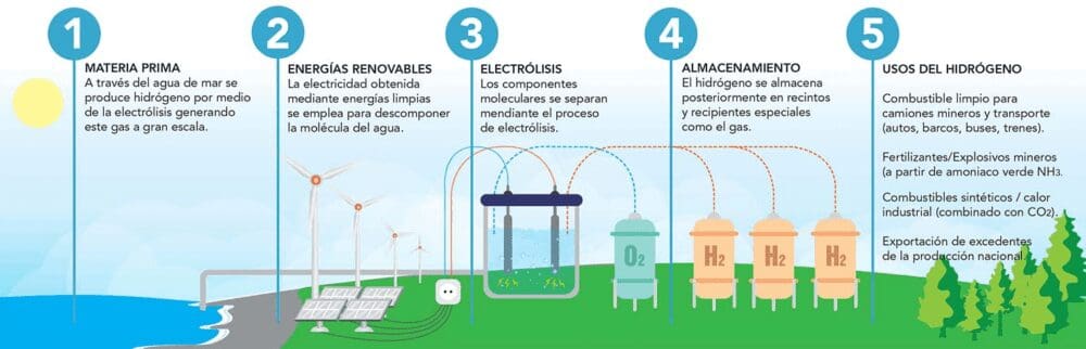 Para el caso de que no se pueda o no convenga electrificar, la solución que se está desarrollando es el hidrógeno verde como combustible alternativo. A diferencia de los combustibles fósiles, es una fuente de energía limpia, porque al utilizarse sólo libera agua (en forma de vapor) y no produce CO2.