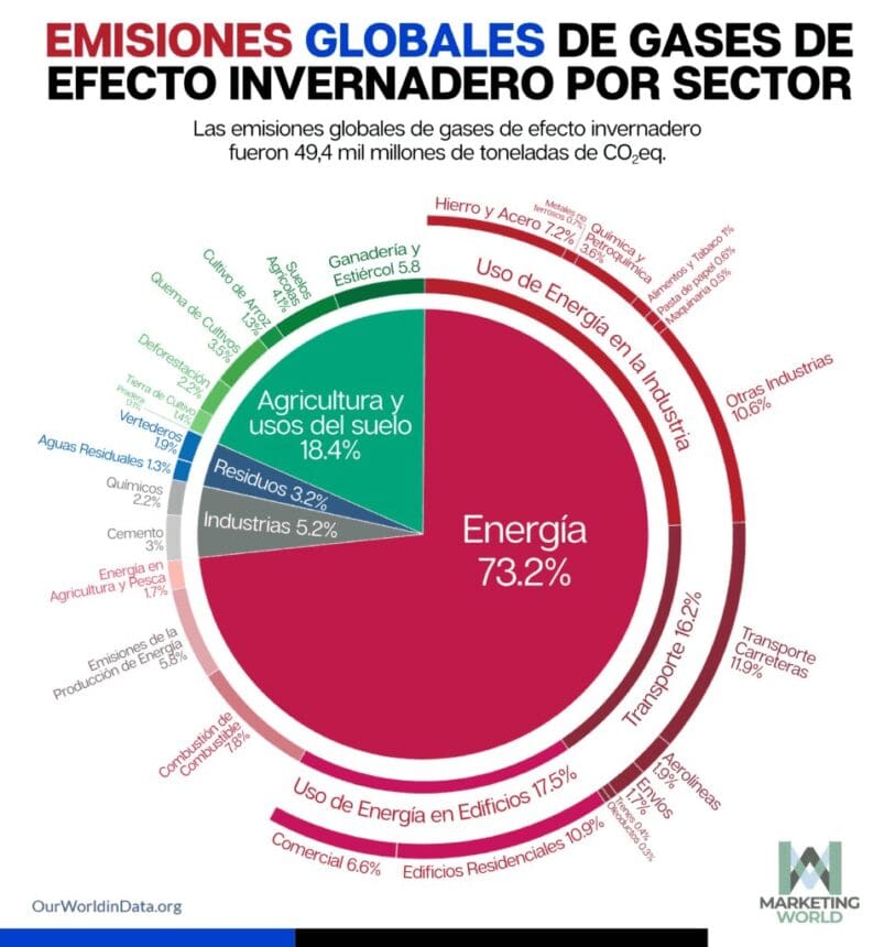 SumateEmisiones por sector en el mundo: