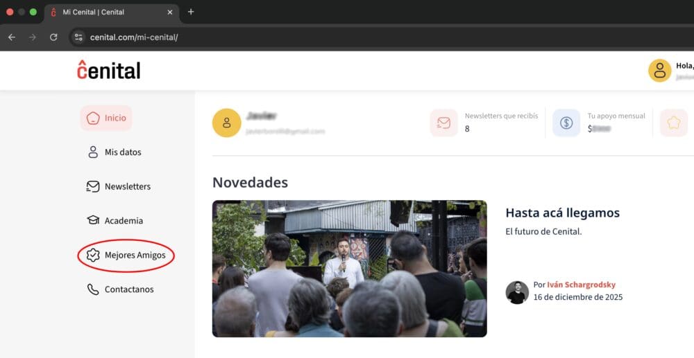 La mejor forma para subir el aporte es a través del perfil de lector que cada uno tiene en Mi Cenital. Si todavía no se crearon su perfil pueden hacerlo pidiendo un reseteo de tu contraseña acá. Una vez ingresado al perfil pueden ir a la pestaña «Mejores amigos».