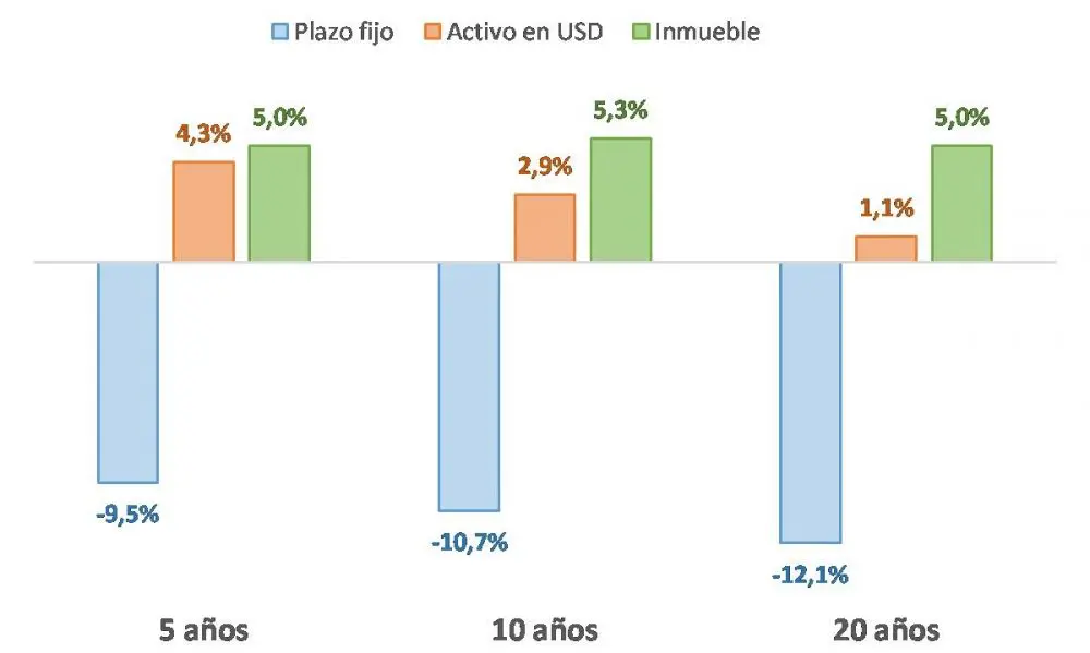 La aclaración de “pequeño” ahorrista es importante, porque existen otros instrumentos financieros de ahorro más sofisticados (fondos comunes de inversión, criptomonedas, acciones, bonos, cedears, entre otros), pero que la mayoría de la población no utiliza por falta de conocimiento, por los elevados montos o porque directamente no tiene acceso. En realidad, para estos ahorristas la decisión se reduce a plazos fijos en pesos o la compra de dólares, ya que aún los inmuebles más baratos -cocheras o terrenos- requieren una inversión inicial superior a los USD 10.000.
