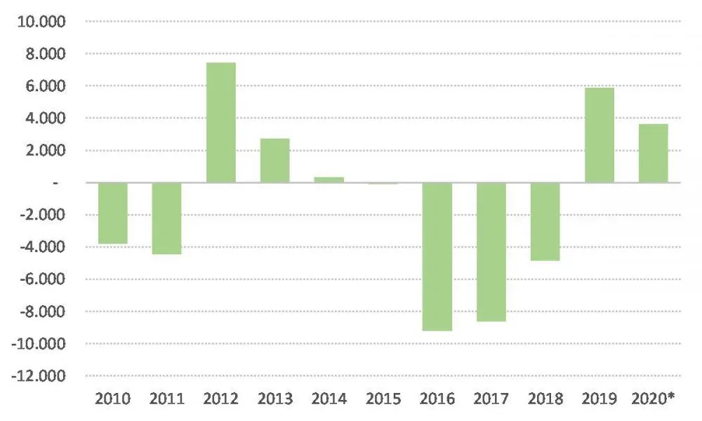 Al contrastar con el balance cambiario se puede ver que en los años de mayores controles cambiarios la diferencia es positiva (lo que estaría indicando el aumento de la tenencia de dólares en el exterior pero que no fueron adquiridos a través del mercado cambiario, sino por mecanismos alternativos), mientras que en los años sin controles sucede lo contrario (parte de esas tenencias en el extranjero son repatriadas). La diferencia positiva del 2019 se da justamente a partir del tercer trimestre, momento en el que se anuncian las regulaciones cambiarias.