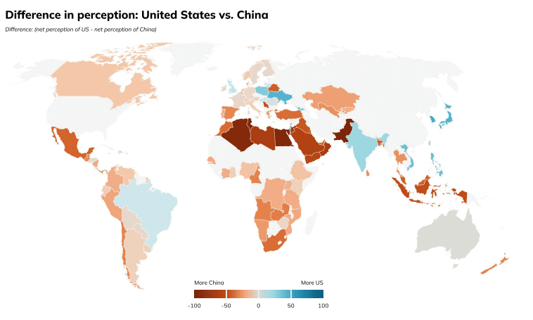 Esta diferencia de enfoques se refleja en la percepción pública. Según el Democracy Perception Index 2025 de NIRA, por primera vez más países tienen una visión positiva de China (+14%) que de Estados Unidos (-5%), una caída abrupta desde el +22% que tenía en 2024. Y cuando se mide a los líderes, Trump es el político con peor imagen global: un 82% de los países le dan un saldo neto negativo, muy por debajo incluso de Putin (61%) y Xi (44%).