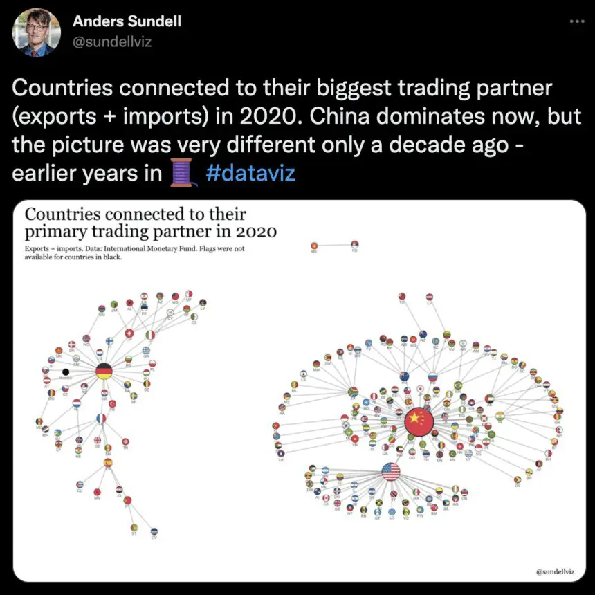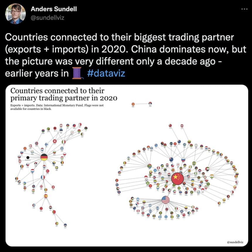 Para China, el vínculo comercial con Estados Unidos y la Unión Europea sigue siendo clave en el corto plazo y es mucho más significativo que el de Rusia. Las dos superpotencias lo saben –y lo sufren– por igual. Esto, que parece una simple apostilla, es en realidad la gran diferencia con la Guerra Fría y la base del desarrollo capitalista de las últimas décadas: la interdependencia económica entre Estados Unidos y China es infinitamente mayor a la que tenían EE.UU. y la URSS. No hay dos polos. Por lo demás, China, además de tener más capacidades económicas que El Gran Otro de aquel momento, tiene garras comerciales clavadas en todos los puntos del mapa.
