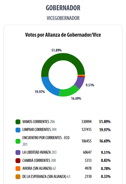 En Corrientes, votó el 70,8% del padrón, 3 puntos menos que en 2021. No se verificó la tendencia de la baja concurrencia que se registró en otras elecciones. Dos lecturas: por tratarse de una elección ejecutiva, que eligió gobernador e intendentes, el interés electoral se mantuvo alto. La oferta –4 listas con cierto volumen: el oficialismo local de Valdés, el peronismo, LLA y Colombi– pudo incidir en que la movilización e involucramiento sea mayor.