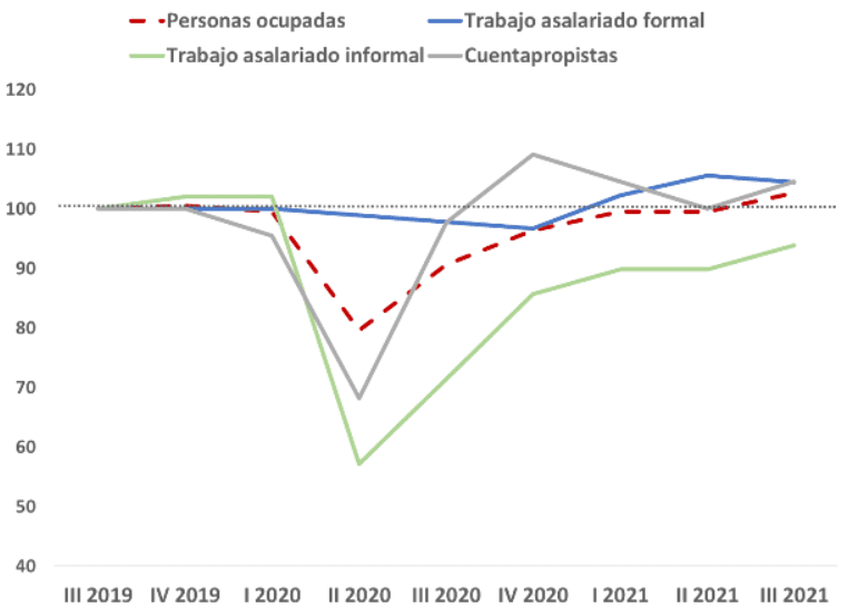 Evolución del número de personas ocupadas por categoría ocupacional. 3° trimestre 2019 – 3° trimestre 2021