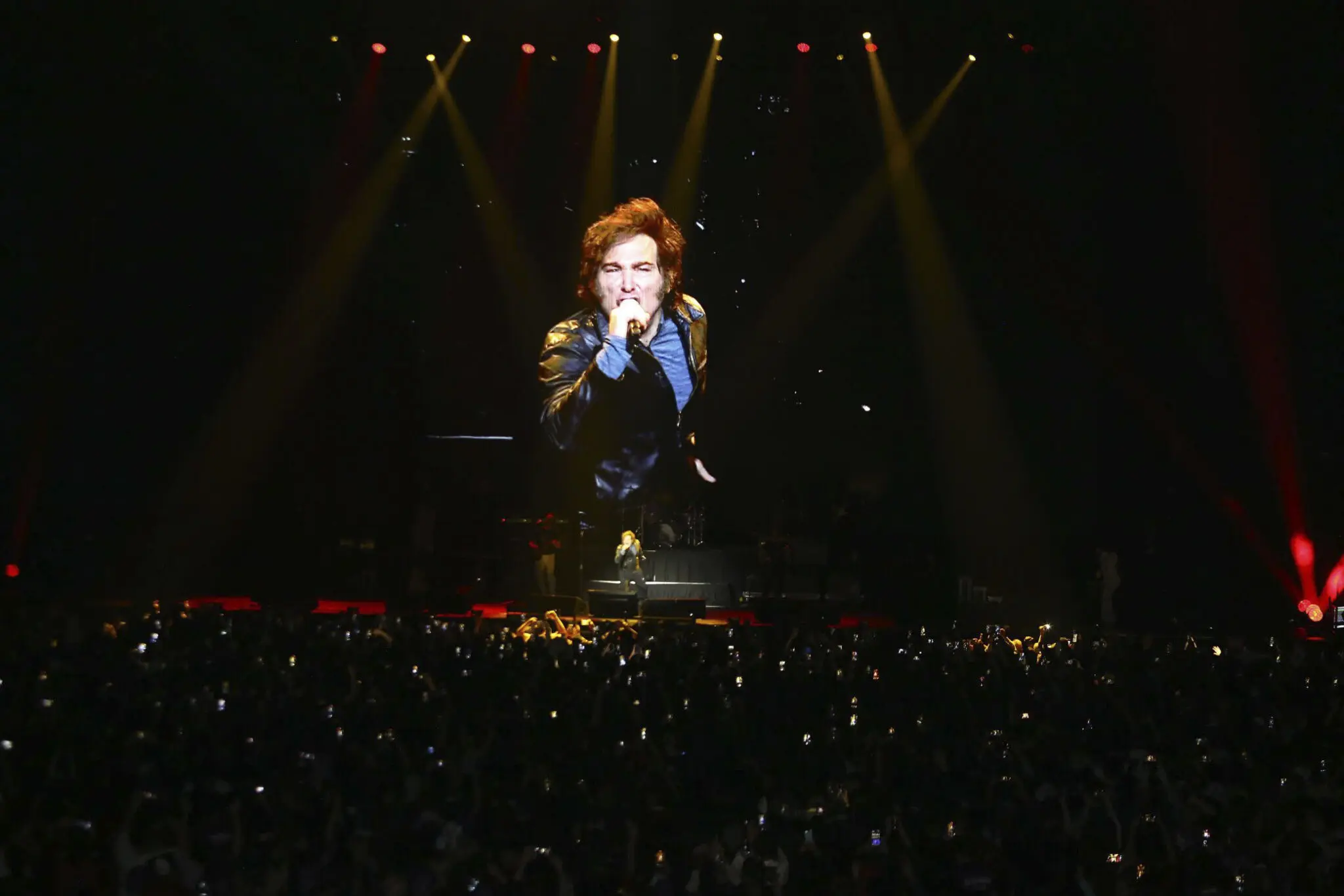 Ayer, hizo su show (?) en el Movistar Arena, a donde entró tras un video de explosiones de edificios y cantó con su banda de libertarios canciones de Charly García, Ratones Paranoicos, La Mississippi, Gilda y Sandro, entre otras, además del cantito “Cristina en tobillera”. Hubo discurso de Agustín Laje sobre “la batalla cultural” y, luego de una ducha, Milei habló sobre su libro.