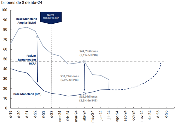 Base monetaria y pasivos remunerados (a precios constantes de abril 2024)