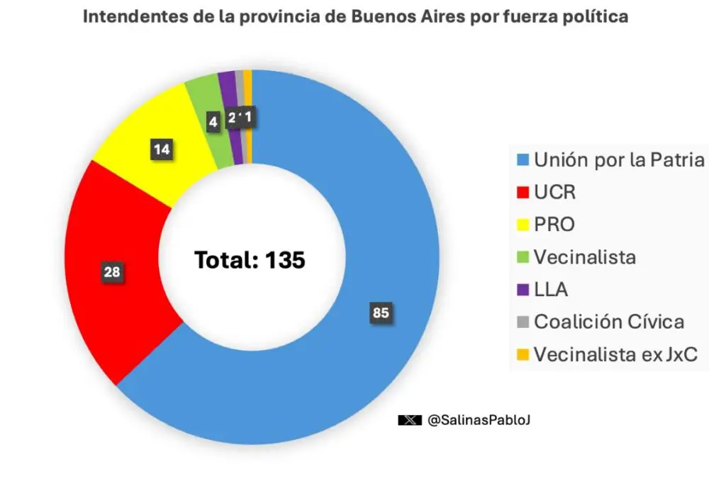 El informe de ARESCO de diciembre pasado muestra que, a nivel nacional, la alianza LLA-PRO retiene casi mecánicamente lo que juntan por separado. A esa foto, Federico Aurelio le agregó una nota al pie: la ecuación total país no se replica en PBA ni en CABA donde el PRO, individualmente, luce más competitivo que en la sumatoria nacional. Respecto a la provincia de Buenos Aires en LLA hacen una lectura anexa: más que la fusión con el PRO, la prioridad de la Casa Rosada es incentivar la fractura del peronismo en dos –en lo posible, tres– ofertas electorales.