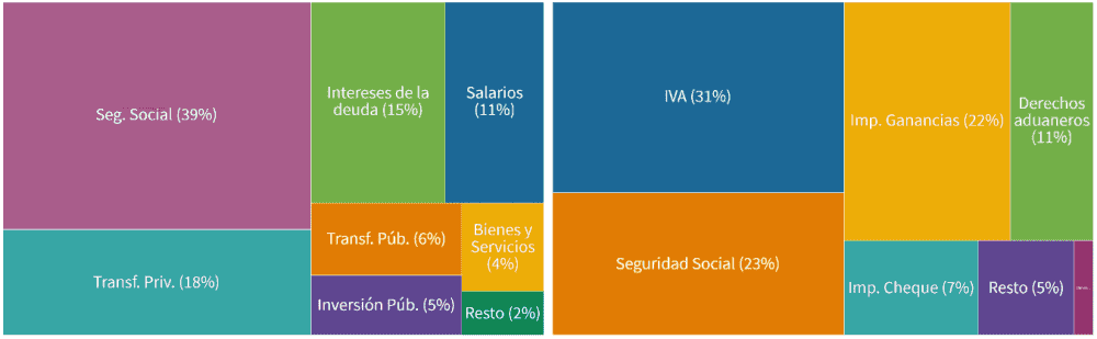El Gobierno Nacional realiza gastos por diversos motivos, donde los más importantes son aquellos destinados a la seguridad social (principalmente el pago de jubilaciones), transferencias al sector privado (AUH, IFE, subsidios al transporte, energía, entre otros), transferencias al sector público (provincias y universidades), el pago de salarios y el de los intereses de la deuda pública.