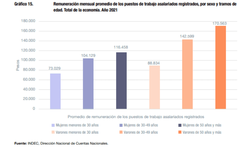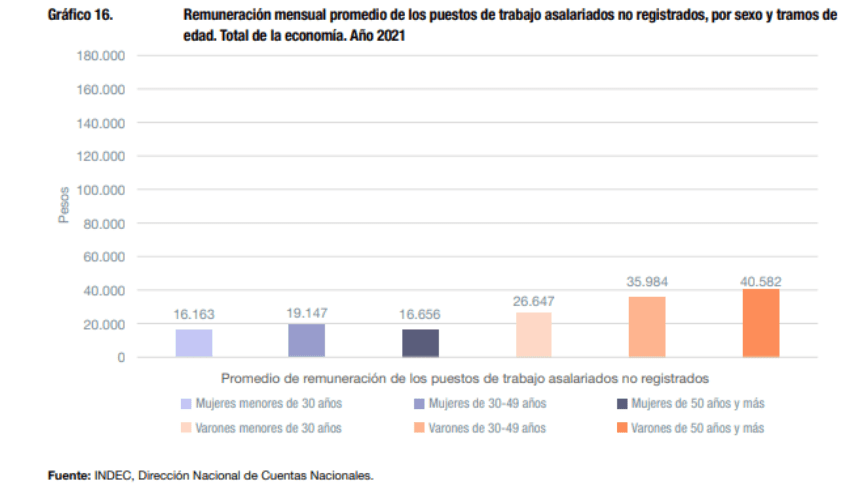 En el caso de la población asalariada pero con sus derechos laborales vulnerados, las brechas por género y edad son igual de profundas, pero con ingresos más chatos. Además, las juventudes se concentran en actividades más exigentes, con jornadas más extensas y con los ingresos más bajos del mercado de trabajo en comparación a los adultos.