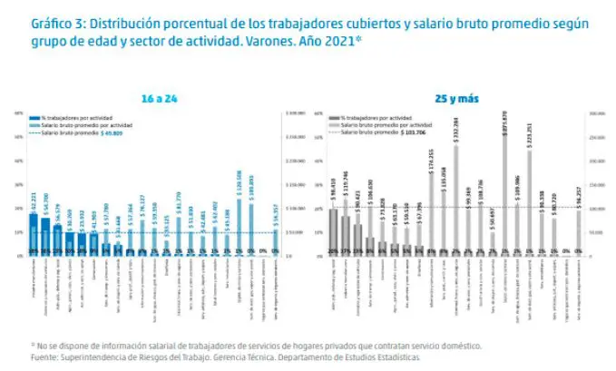 - El 5,0% de los varones de 16 a 24 años se desempeña en construcción de edificios y sus partes, valor que desciende al 2,9% en el resto de las edades. (SRT 2021).