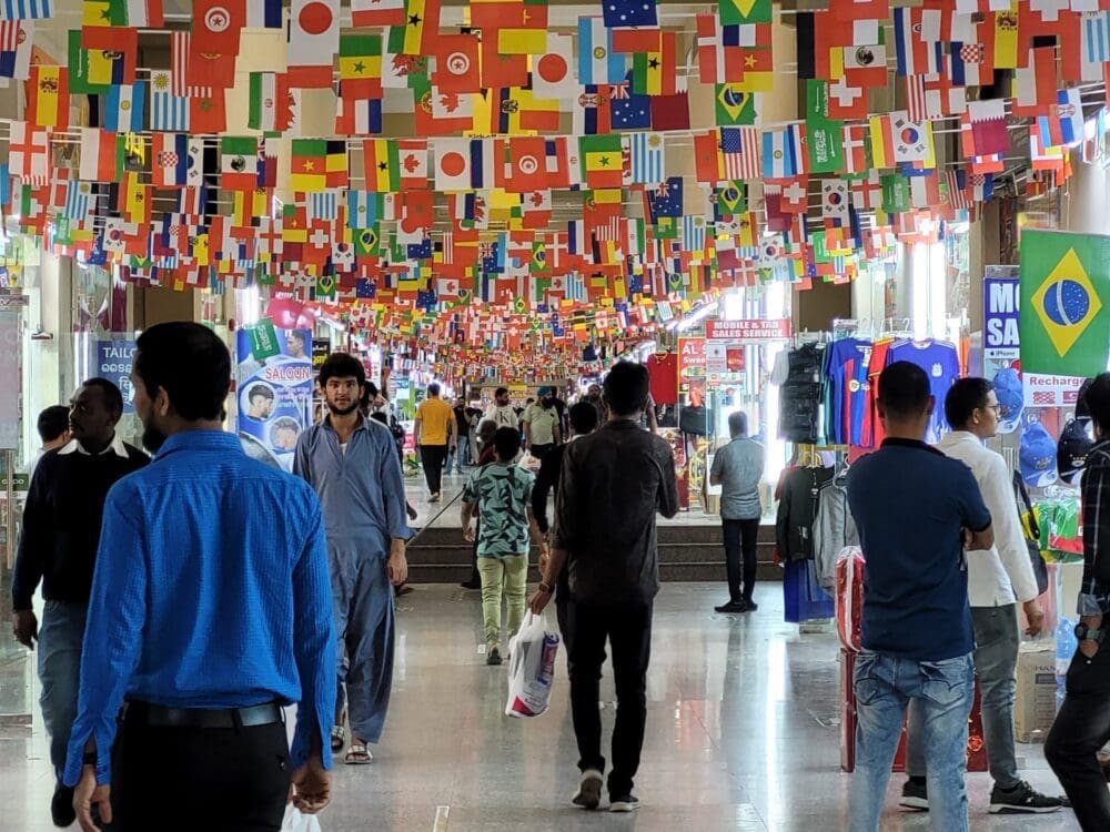 Viajé a Asian Town con dos colegas. Recorrí el Fan Zone que me hizo recordar alguna peli de Wong Kar-wai, la galería comercial con banderitas de Mundial, llena de peluquerías con afiches de Messi, negocios de comida y ropa. Decenas haciendo fila en cajeros electrónicos para girar dinero a sus familias. Además, el “Grand Mall” con serpentinas de luces, una plaza, una sala para rezar (cinco veces por día), y, en un enrejado, viviendas de los trabajadores, tres pisos con cientos de habitaciones. Un cartel que recuerda prohibiciones de caminar descalzo, alcohol, tabaco y mascotas. Otro cartel de la FIFA que dice: “Gracias por sus contribuciones para ofrecer la mejor Copa Mundial de la historia”. Éramos una presencia extraña en el lugar. Pero cero hostilidad. Todo lo contrario. Amabilidad extrema. Un indio de Bombay nos convidó chocolates de su local, otro nos dio llaveros de Nepal y un peluquero de Chennai pidió él mismo una foto posando en el afiche de Messi y con banderita argentina.