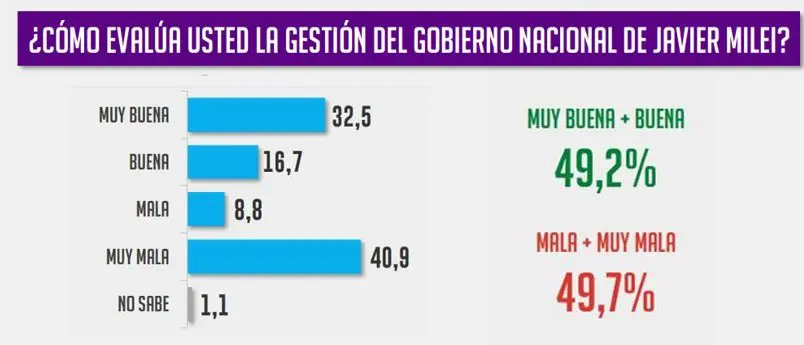 El último estudio de TresPuntoZero, la consultora de Shila Vilker, que figura en un balance del año Milei que publicó La Sastrería, muestra un empate en imagen –la negativa levemente arriba– pero aparece otro indicador relevante: un 40.9% que tiene “muy mala” imagen del presidente, lo que constituye un núcleo duro de rechazo ideológico y cultural a las políticas y los modos del libertario, que no parece cambiar su percepción a pesar de la calma inflacionaria.