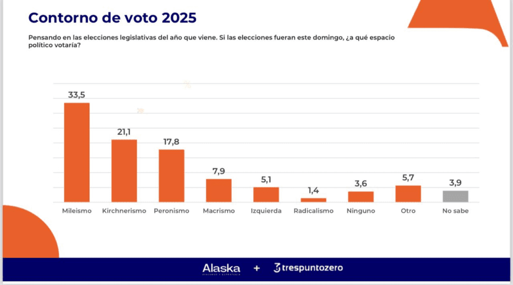Una novedad enlaza las investigaciones de Aurelio y Vilker: en ocho meses, el respaldo a Milei se mantuvo estable, con cambios marginales, pero en septiembre algo ocurrió. Una hipótesis es que dejó de bajar la inflación. En el estudio de Alaska, la inflación creció entre las preocupaciones: en enero, el 63% de los consultados lo tenían como principal problema. En agosto, cayó a 14%. En septiembre, subió a 25%. Otra es que empieza a ceder la expectativa en una mejora económica. Un estudio de ARESCO en Córdoba, la provincia más mileísta de la galaxia, otorga 60% de respaldo al presidente pero uno de cuatro anticipa que dejará de hacerlo si antes de fin de año no hay una mejora palpable de la economía.