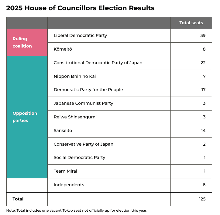 El 20 de julio, Japón votó. Lo hizo para renovar la mitad de su Cámara de Consejeros (la alta, la menos protagonista) pero el mensaje fue inequívoco: el Partido Liberal Democrático (PLD), pilar casi inmutable del sistema político japonés desde la posguerra, recibió apenas el 21% de los votos junto a su socio Komeito. El peor desempeño de su historia.