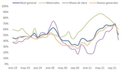 Evolución del nivel general de los costos de la construcción y sus componentes (% anual)