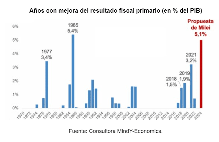La descripción detallada de todo este panorama tan recesivo es para advertir que no parece compatible con la decisión del gobierno de llevar a cabo el mayor ajuste fiscal de la historia reciente, como muestra el gráfico debajo.