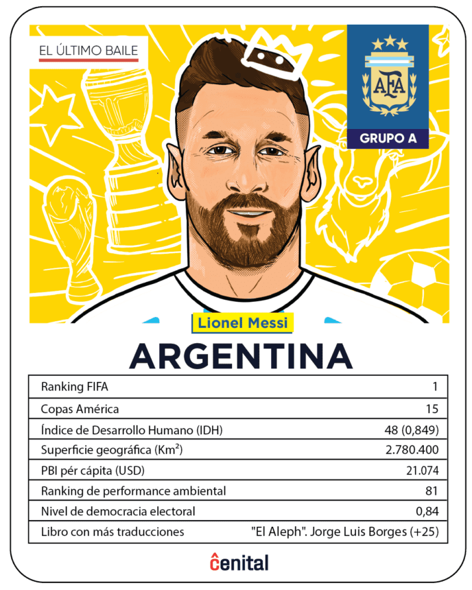 A diferencia del último Mundial, cuando nos subimos a la fiebre de las figuritas, ahora vamos con un juego de cartas. Son 16 en total, una por cada selección de la Copa América. Cada carta destaca a su figura y brinda siete datos que permiten comparar a los países por las variables que analizamos en la diaria de Cenital desde nuestros newsletters. ¿De qué se trata? Comprobalo con las primeras cuatro cartas de las selecciones que integran el grupo A.