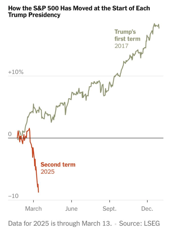 Tesla está en una situación complicada. Desde el comienzo del año sus acciones cayeron un 40%. El sentimiento del mercado hoy parece inclinarse a que el horizonte viene con nubarrones importantes. Ya comienza a circular el rumor de que el país podría entrar en recesión. Y si el temor de Tesla son las represalias, tanto Canadá como la Unión Europea amenazaron con aplicar tarifas como respuesta a los aranceles sobre las importaciones de acero y aluminio que entraron a correr la semana pasada.
