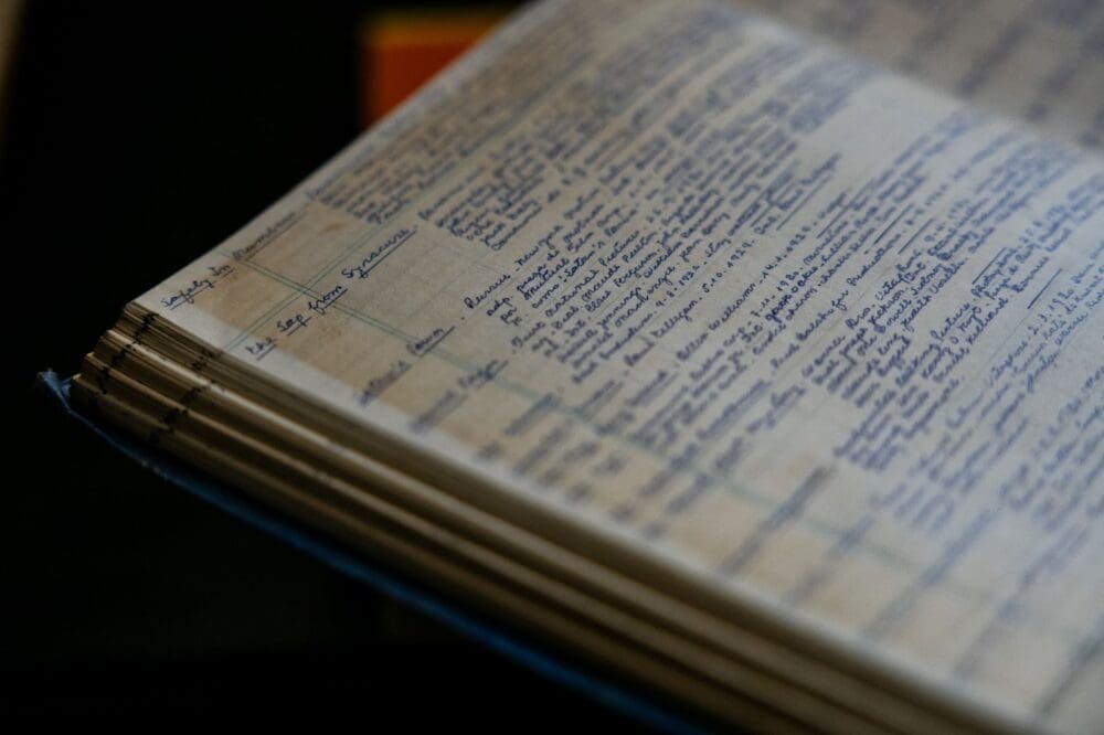 No, eso es un delirio. Son los cuadernos de un coleccionista de cine mudo que era comisario, se llamaba Félix Giuliodori. Le compré la colección en su momento y la familia me dio esto, que son sus fichas con todas las películas mudas que jamás se hayan hecho [abre uno de los cuadernos y pasa las páginas. Hay cuadros sinópticos prolijísimos, escritos en cursiva, hasta el último renglón de la última página]. Los consulto a veces porque ahí encuentro el título en castellano con el que se estrenaron muchas películas mudas. Hay de hecho una entrada sobre él en Diario de la filmoteca [si tienen el libro, cuenta esta historia con más detalle en la página 28].
