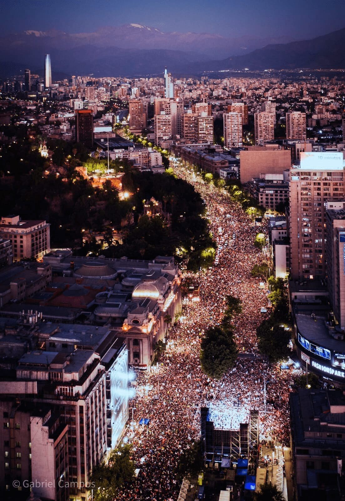 Pero eso vendrá después. Ahora, la luna casi llena, que custodió toda La Alameda durante los festejos, se está retirando. El veredicto es inapelable: después de un encierro que parecía haber dejado secuelas irreversibles en la vitalidad de la noche santiaguina, esta recordó algunos movimientos del año anterior y los volvió a poner en juego. Algunos cabros aprovecharon el regreso a casa para pintar grafitis (como si a esta ciudad le faltaran grafitis). Y, recién, cuando la avenida Vicuña Mackenna se preparaba para cerrar la noche, un chico pasó con un parlante escuchando a Víctor Jara a todo volumen. Sonaba El derecho de vivir en paz. No sé, porque es tarde y tampoco quiero preguntar, si a otro pernoctado lo embargó un sentimiento de melancolía. Si no es esa letra y su melodía la que mejor acompaña la sensación de alivio que algunos acá pueden haber sentido, por haber evitado un escenario que a todas luces era negativo. Pero después creo que no, porque no es alivio lo que se vio en estas calles. No hoy, al menos. Por acá pasó una fiesta. De esas a las que Santiago, dicen, se había desacostumbrado.
