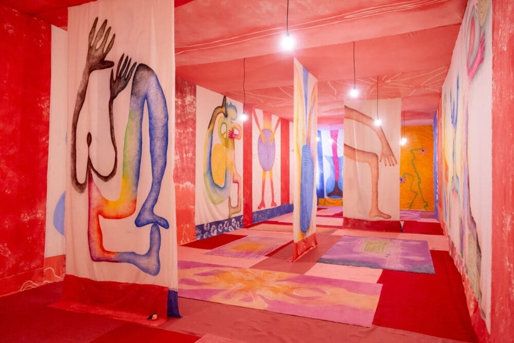 - Ofrenda, de la artista argentina Celina Eceiza, es una instalación que ocupa un gran espacio de exhibición en el segundo piso del Museo Moderno, en el barrio de San Telmo. Allí nos encontramos como espectadores con un panorama llamativo: del piso al techo cuelgan telas coloridas con figuras, hay objetos dispersos en el piso, almohadones gigantes para recostarse ahí. El lugar está transformado y la percepción pasa por la vista y se ayuda con el tacto. De repente, ya no parece que estemos en un edificio de líneas rectas y ascensores, sino en un espacio ritual y un poco hippie en el que el vaivén de las telas y los colores hablan su propio lenguaje. Para armar esta instalación, Eceiza se valió de materiales diversos y de procesos de la producción textil: hay patchwork, batik, figuras de yeso, y un trabajo de meses de ensamblaje, costura, disposición, en el que participaron muchas de las personas que trabajan en el museo. Vale la pena meterse un rato en este mundo. Lo que sí, cierra el 30 de marzo (la entrada sale $2500 y los miércoles es gratis).