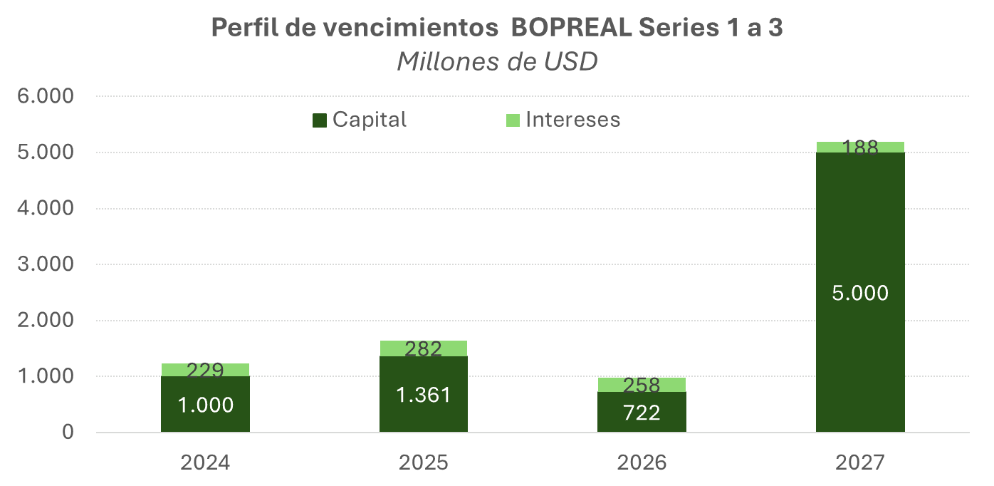 A esto hay que agregarle los pagos de la deuda externa que se hacen particularmente exigentes a partir del año que viene, a lo que se suma el pago del Bopreal que no se utilice de manera anticipada para el pago de impuestos. Y los que sí se usen para el pago de impuestos reducen el financiamiento de los gastos públicos a través de la recaudación, siendo necesarias nuevas medidas de consolidación fiscal.