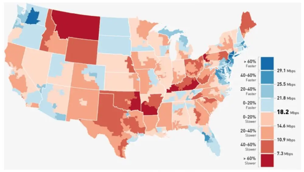 Hagamos un salto a esta década para ver cómo está distribuida la velocidad de internet en Estados Unidos, ese país del “primer mundo”: