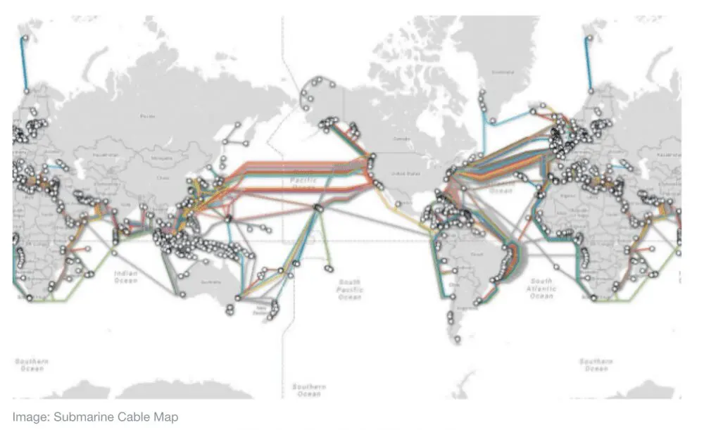 ¿Qué es Internet? Una “red de redes” que permite la intercomunicación. Es decir, es la infraestructura sobre la cual sucede el intercambio de datos –emails, fotos, videos, documentos, canciones, y todo lo demás también. Acá un mapa mundial de los cables que sostienen esa red.