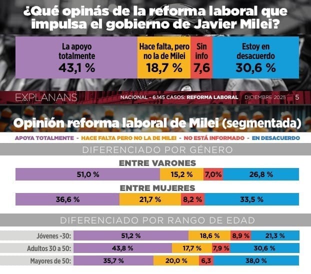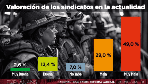 Milei avanza sobre un terreno fértil: enfoca que la reforma laboral tiene que ver con los gremios, quizá uno de los sectores más cuestionados del ecosistema político argentino. Un estudio nacional, con más de 6 mil casos de la consultora Explanans, muestra dos perfiles: que la demanda de una reforma laboral va más allá del universo electoral que apoyó a Milei y que el rechazo a los sindicatos es transversal.