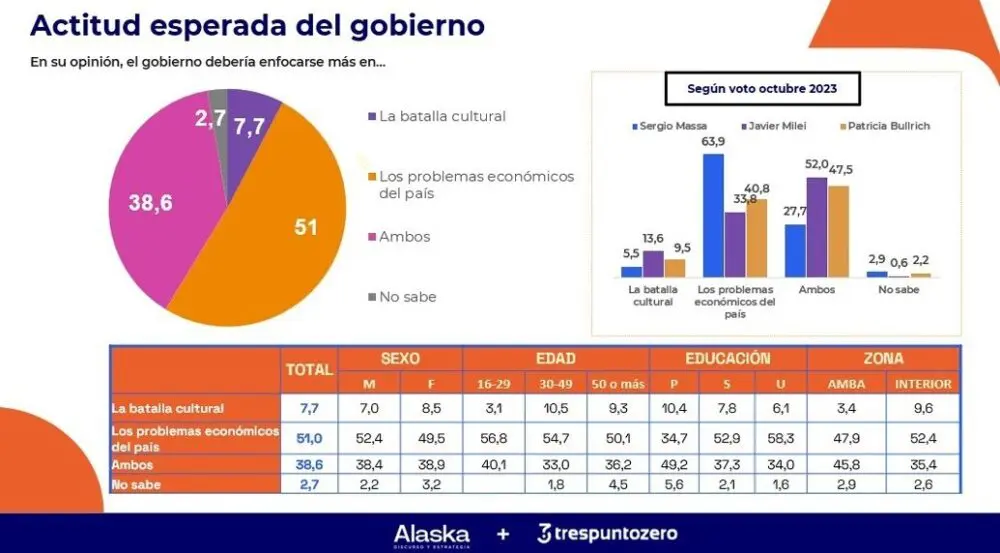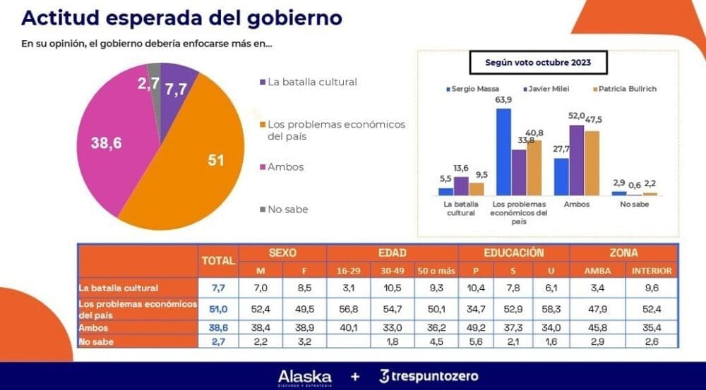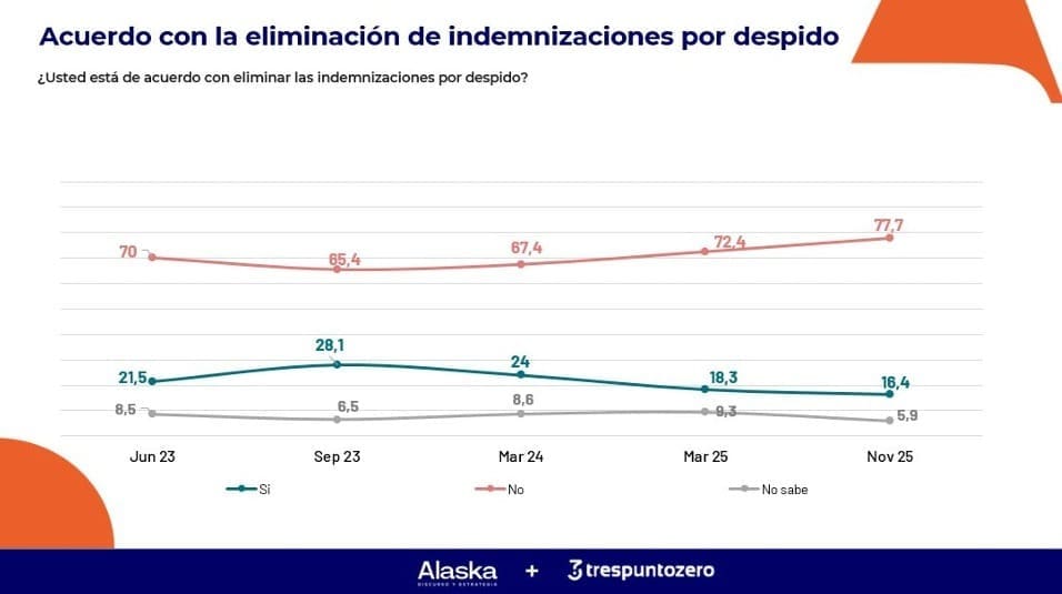 La eliminación de la indemnización por despidos se incrementa al igual que la defensa al derecho a protestar. Juan Courel, de Alaska, expone dos tesis enlazadas frente a la pregunta de porqué, a pesar de que las mayorías rechacen los preceptos de Milei, igual ganó las elecciones. Según Courel, desde que asumió la presidencia, la posición de Milei en todos los debates ideológicos “se vio debilitada”.