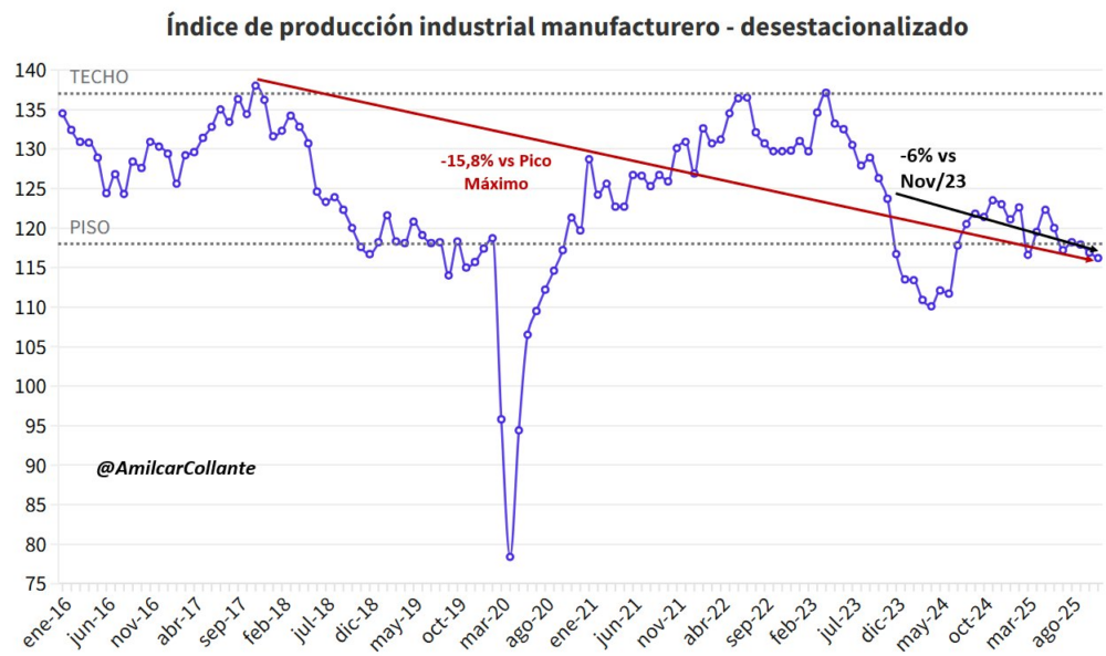 Ese deterioro en las cuentas públicas agravaría una tendencia. En diciembre, la recaudación nacional mostró una baja por sexto mes consecutivo. En paralelo, los datos del INDEC reflejaron una caída pronunciada en la industria (8,7% interanual) y la construcción (4,7% interanual) en noviembre confirman una tendencia: en los últimos 23 meses, la industria cayó 16 y la construcción 14, según el reporte del consultor Matías Battista.