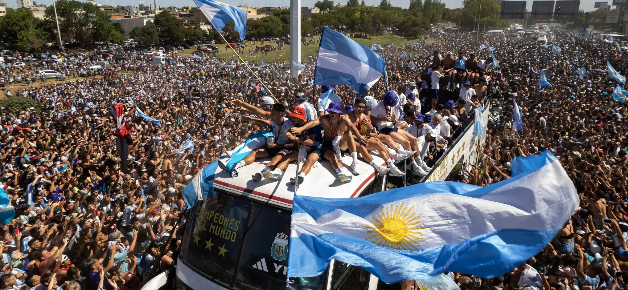 Se estima que cinco millones de personas se acercaron a ver a los jugadores en el feriado de ayer. La caravana no consiguió llegar al Obelisco y los jugadores se acercaron a la zona en helicópteros. Luego volvieron al predio de la AFA en Ezeiza y de ahí comenzarán a volver a sus ciudades.