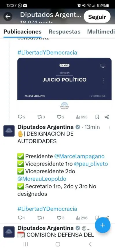 Y, por si fuera poco, en las redes oficiales de la Cámara baja Pagano fue presentada como la nueva presidenta de la Comisión de Juicio Político. Aunque minutos más tarde el posteo fue borrado.