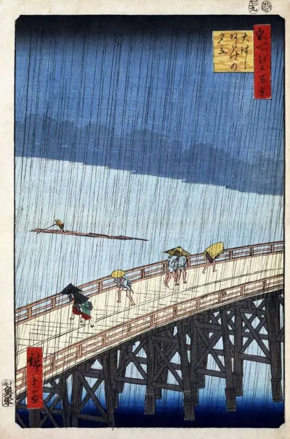 Hiroshige, Lluvia repentina sobre el puente Atake (1857)