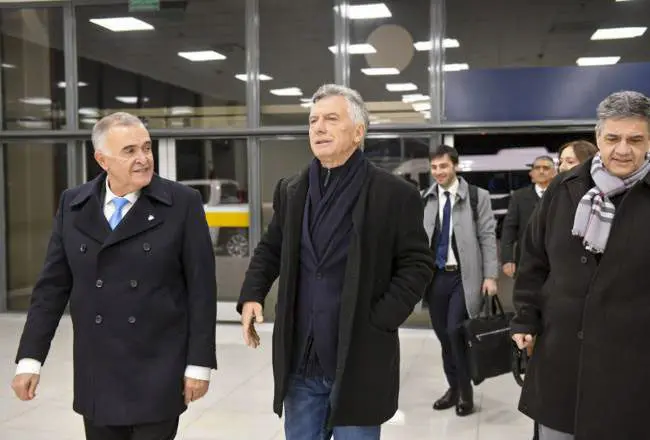 El gobernador Osvaldo Jaldo recibe a Mauricio Macri y Jorge Macri.