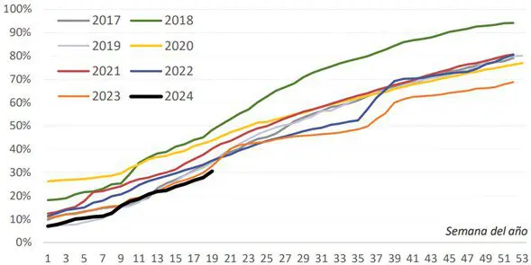 Además del incremento de la demanda de dólares, desde hace semanas se observa una oferta de divisas relativamente estancada, explicado por la poca liquidación de dólares provenientes de la cosecha de soja, que no termina de arrancar. Como muestra la consultora 1816, en lo que va del año el sector agroexportador vendió en el mercado cambiario solamente el 30,5% de la producción, el valor más bajo de los últimos 8 años.