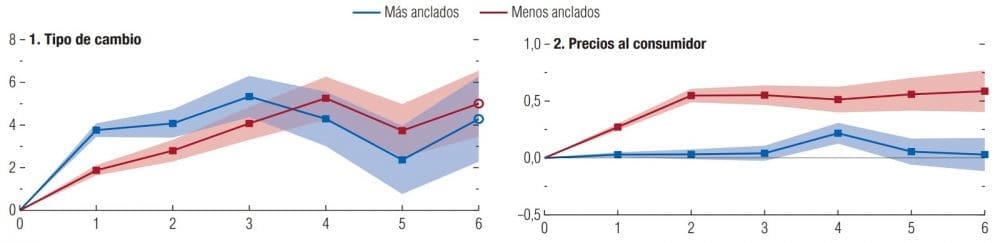 Si las expectativas no se encuentran bien ancladas, eso lleva a que las empresas respondan más rápido y con mayor virulencia ante cualquier evento transitorio que pueda afectar los precios. Esto significa que dos economías que se ven afectadas exactamente por el mismo problema (por ejemplo, por una crisis internacional que provoca una devaluación del 20% de su tipo de cambio) van a mostrar diferentes respuestas en materia de precios: en el país con expectativas ancladas, el incremento en los precios va a ser menor que en el país donde esto no se verifica.