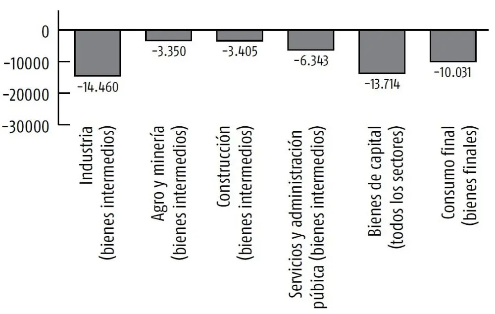 Allí los autores muestran que, si bien la mayoría de las importaciones de origen industrial son efectuadas por la industria, una buena parte es realizada por los consumidores directamente (vehículos, electrónica, productos farmacéuticos, entre otros), la construcción (materiales e insumos metalmecánicos), el sector público y el primario (productos químicos, farmacéuticos, fertilizantes, entre otros).