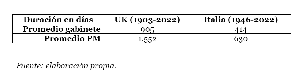 Estos sucesos que alimentaron los análisis políticos internacionales me llevaron a pensar: ¿cuánto duran los primeros ministros en Italia y en Reino Unido? Si vos no lo pensaste, es un planazo. Yo la pasé bomba y entré a distintas bases de datos para calcular cuántos días suelen durar los líderes de los gobiernos italiano y británico, y ver si hay diferencias entre ambos. Básicamente porque sabemos que son modelos opuestos.