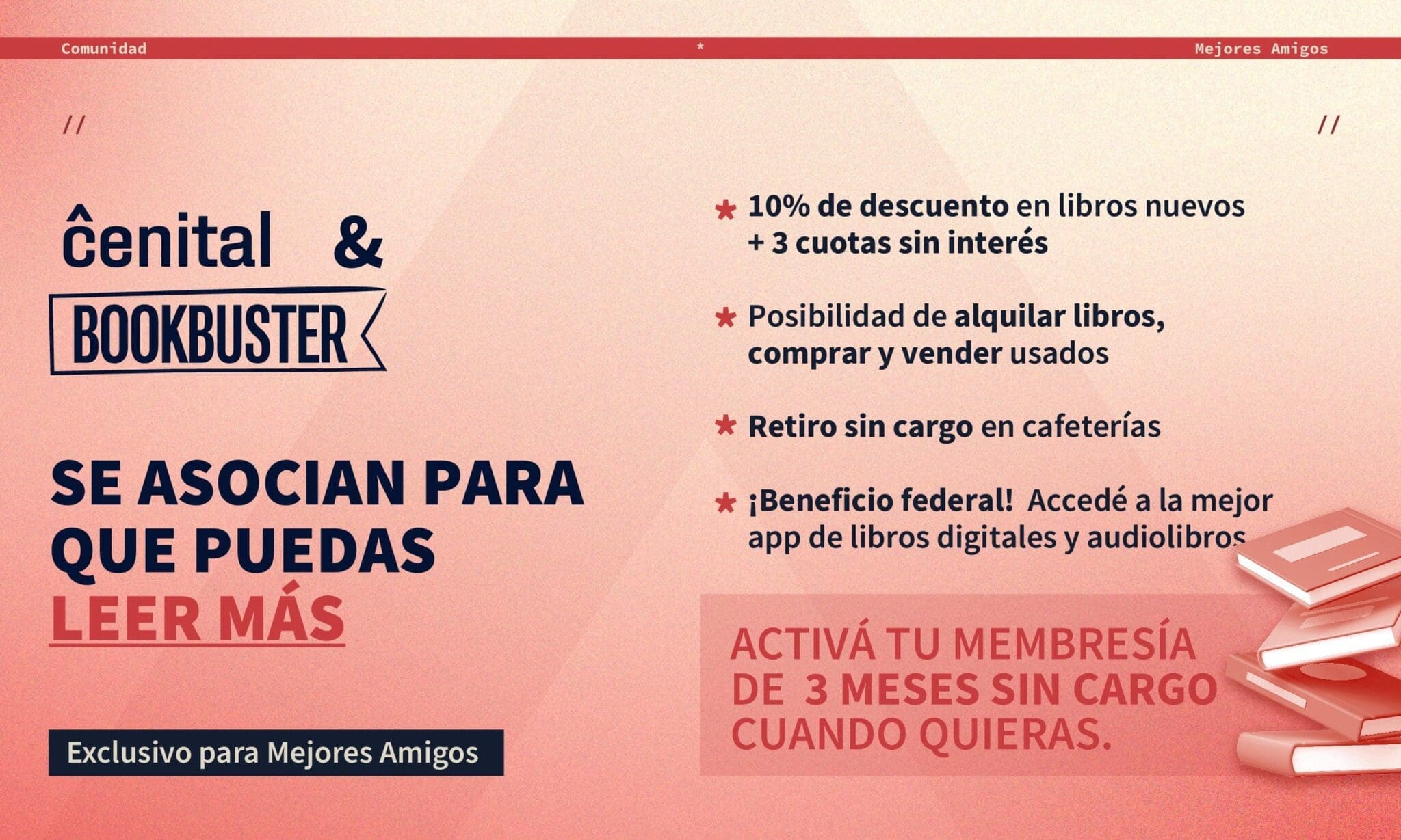 Los Mejores amigos de Cenital ahora pueden activar una cuenta en Bookbuster para acceder a libros físicos más baratos y disfrutar de una membresía en Bookmate con la mayor biblioteca digital de América Latina.